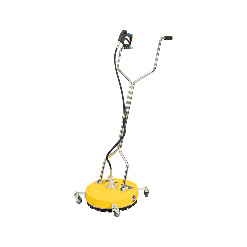 De plastic schijfbodemreiniger is een accessoire van een hogedrukreiniger, die speciaal wordt gebruikt voor het reinigen van de vloer en wordt gebruikt in combinatie met de hogedrukreiniger. Het hogedrukwater dat wordt geleverd door de hogedrukreiniger wordt gebruikt als de stroom- en waterbron en wordt door de vloerreiniger op de vloer gespoten om de reiniging van de vloer te voltooien. De vloerreiniger is uitgerust met een roterende middenas, die is verbonden met een roterende arm. Een mondstuk is geïnstalleerd aan het einde van de roterende arm en het mondstuk heeft een schuine hoek van ongeveer 70 graden met de grond. Op deze manier, wanneer de hogedrukwaterstroom naar de grond wordt gespoeld, vormt de grond een omgekeerde stuwkracht naar de hogedrukwaterstroom, die de roterende arm duwt om met een hoge snelheid te roteren. Daarom, wanneer een persoon de vloerreiniger duwt om de grond te reinigen, spoelt de hogedrukwaterstroom uit het mondstuk de grond terwijl hij met een hoge snelheid draait, waardoor de reinigingsefficiëntie sterk wordt verbeterd en de gereinigde grond zeer schoon maakt. Momenteel is dit product veel gebruikt in wegoppervlakken, gemeenschapsvloeren, openbare plaatsen en andere gelegenheden voor vloerreiniging en is een zeer populair product. De plastic schijf heeft een sterke corrosieweerstand, lichte textuur en is relatief economischer en praktischer.